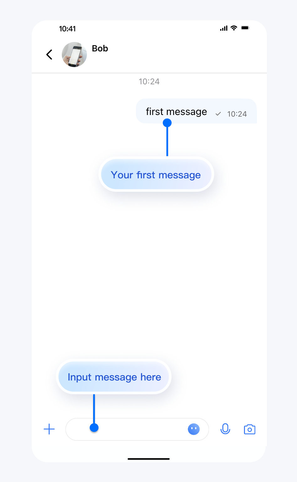 // Pass userID for 1v1 conversation.- (void)pushToChatViewController:(NSString *)groupID userID:(NSString *)userID {// Create conversationData.TUIChatConversationModel *conversationData = [[TUIChatConversationModel alloc] init];conversationData.userID = userID;// Create c2c chatVC.TUIBaseChatViewController_Minimalist *chatVC = [[TUIC2CChatViewController_Minimalist alloc] init];chatVC.conversationData = conversationData;// Option 1: navigate to chatVC.[self.navigationController pushViewController:chatVC animated:YES];// Option 2: add chatVC as a childVC to your parent VC.// [self addChildViewController:vc];// [self.view addSubview:vc.view];}