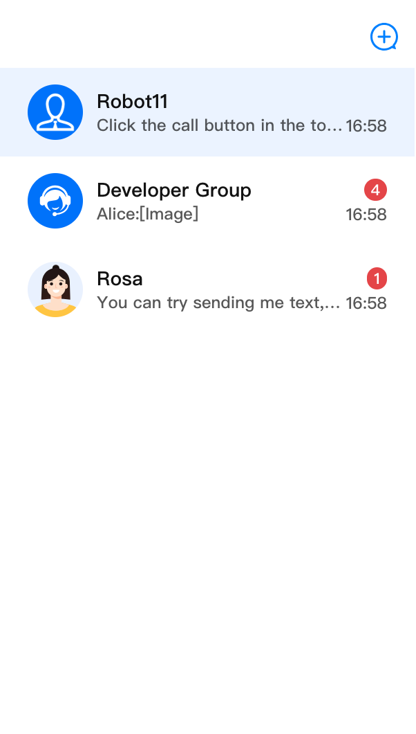 import {ConversationList,ConversationListHeader,} from '@tencentcloud/chat-uikit-react';import type { ConversationListHeaderProps } from '@tencentcloud/chat-uikit-react';const CustomConversationListHeader = (props: ConversationListHeaderProps) => {const CustomIcon = <div>自定义 Icon </div>;return (<ConversationListHeader {...props} right={CustomIcon} />);};<ConversationList Header={CustomConversationListHeader} />