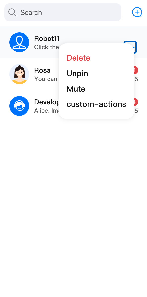 enablePin: false | enableDelete: false | enableMute: false | customConversationActions |