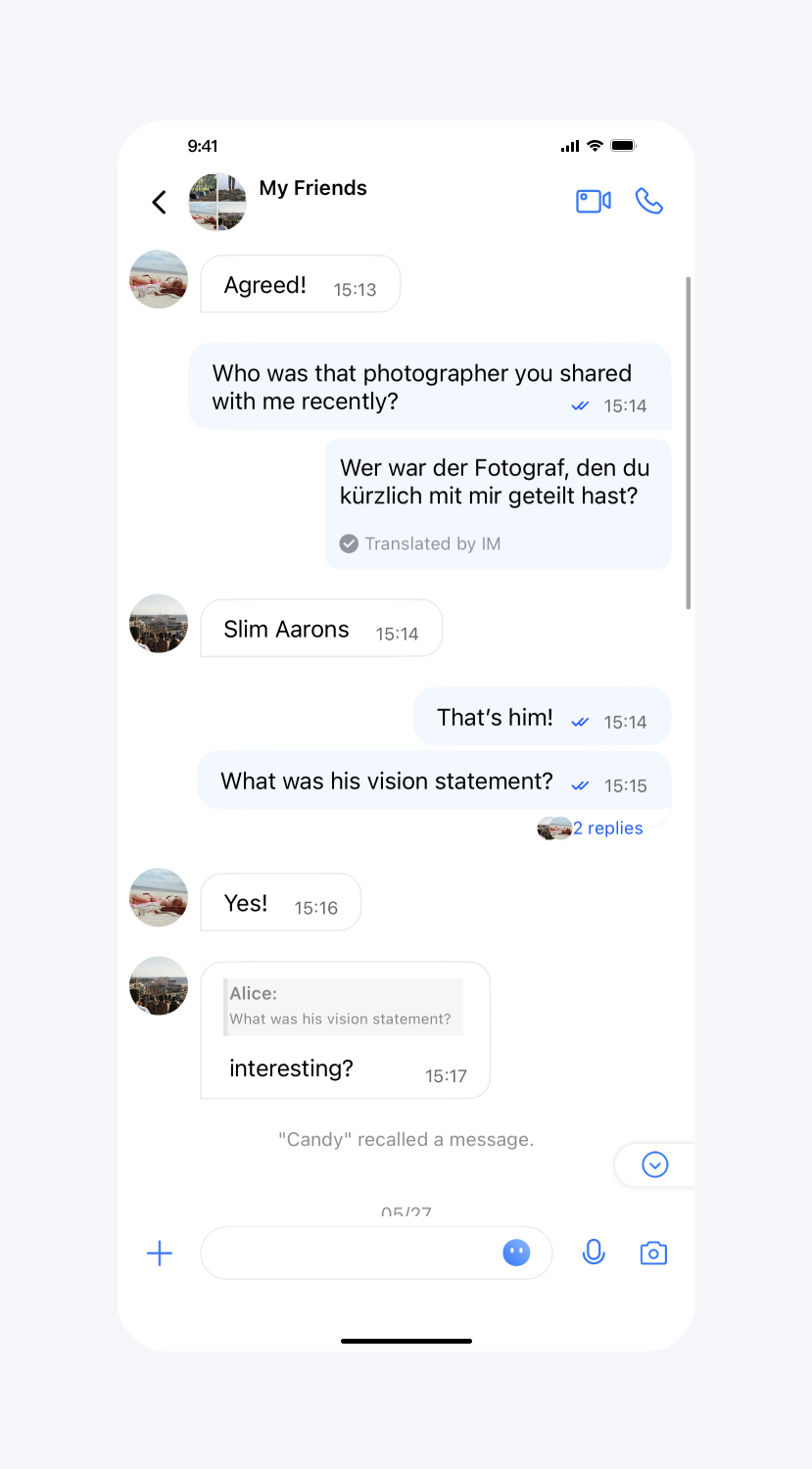 // TUIChatConfigMinimalist.java/*** Time interval within which a message can be recalled after being sent.* The default value is 120 seconds.* If you want to adjust this configuration, please modify the setting on Chat Console synchronously: https://trtc.io/document/34419?platform=web&product=chat&menulabel=uikit#message-recall-settings*/public static void setTimeIntervalForAllowedMessageRecall(int timeIntervalForAllowedMessageRecall)