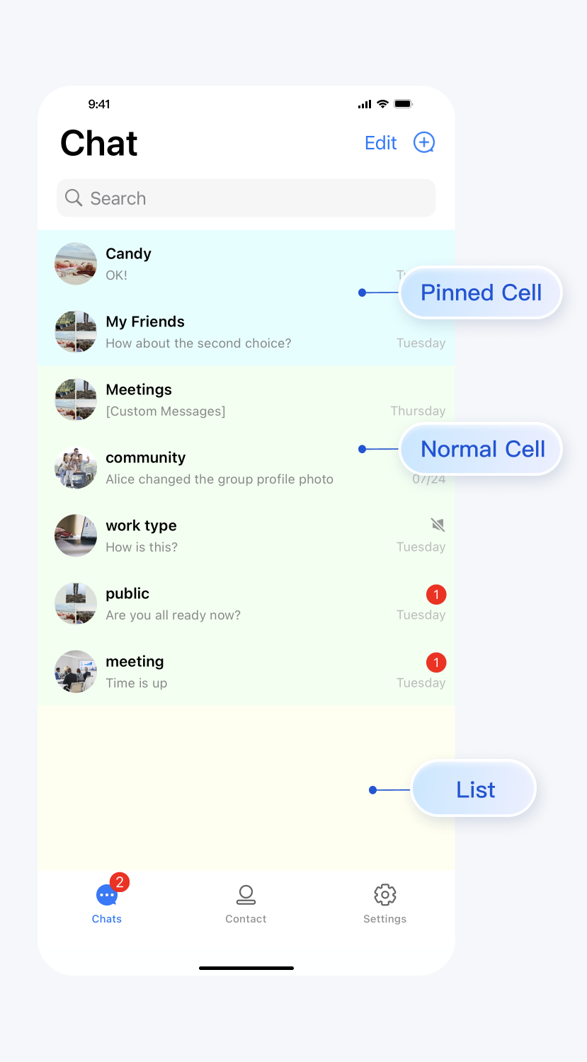 // When to call: Before initializing conversation list.TUIConversationConfigMinimalist.setListBackground(new ColorDrawable(Color.BLUE));TUIConversationConfigMinimalist.setCellBackground(new ColorDrawable(Color.LTGRAY));TUIConversationConfigMinimalist.setPinnedCellBackground(new ColorDrawable(Color.GRAY));