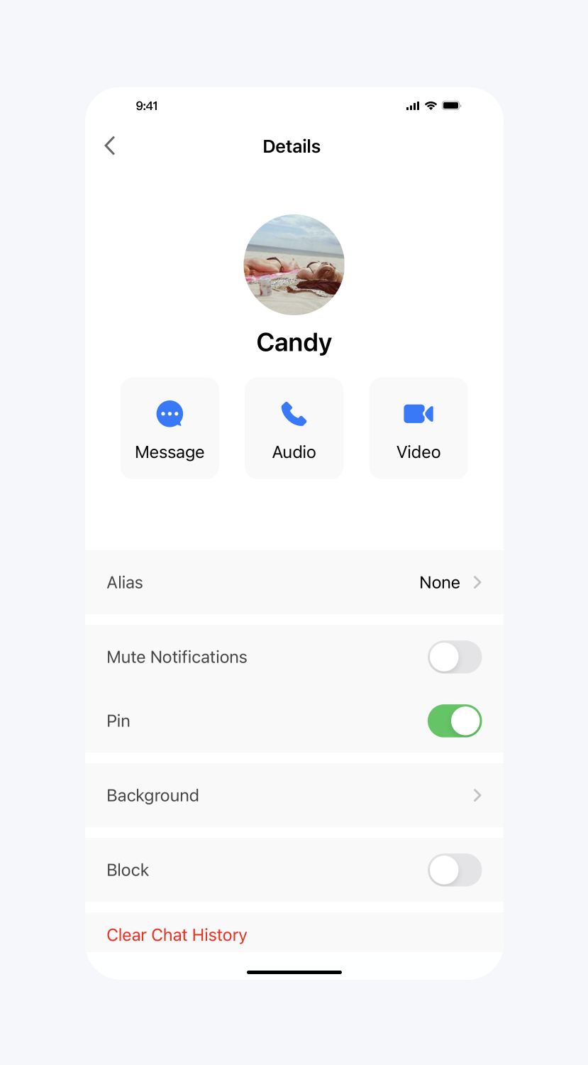 // When to call: Before initializing contact setting interface.// Valid for contacts.FriendConfig.hideItemsInContactConfig(FriendConfig.BLOCK,FriendConfig.CLEAR_CHAT_HISTORY,FriendConfig.DELETE);// Valid for strange users who have not been added to the contact.FriendConfig.hideItemsInContactConfig(FriendConfig.ADD_FRIEND);