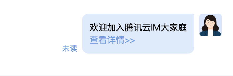 import { TUIChatService } from "@tencentcloud/chat-uikit-engine";const sendCustomMessageParams = {payload: {data: JSON.stringify({text: '欢迎加入腾讯云大家庭',url: 'https://www.tencentcloud.com/document/product/269?from_cn_redirect=1'}),description: "text_with_link",extension: "text_with_link"},};// 模拟发送一条自定义消息TUIChatService.sendCustomMessage(sendCustomMessageParams).catch(err => { /** */ });