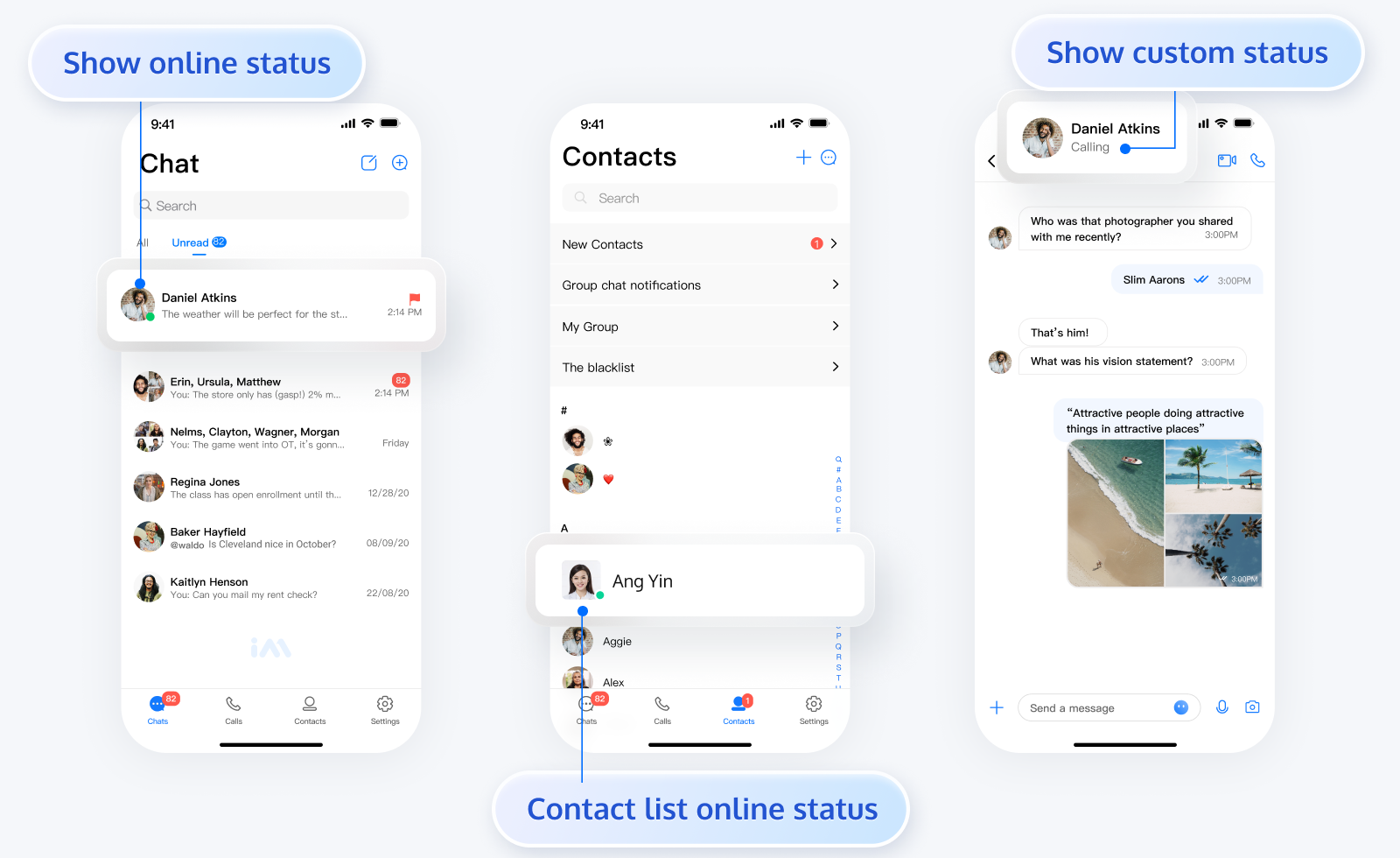 setSelfStatus 接口不限制旗舰版或企业版。getUserStatus 查询自己的状态,不限制旗舰版或企业版。getUserStatus 除了查询自己外的其他能力,均需要升级到旗舰版或企业版。subscribeUserStatus / unsubscribeUserStatus 接口的所有能力,均需要升级到旗舰版或企业版。setSelfStatus 接口不限频。getUserStatus 查询自己的状态,不限频。getUserStatus 除了查询自己的状态外,默认限制 5 秒 20 次请求,单次查询最大用户数不超过 500。subscribeUserStatus 接口,默认限制 5 秒 20 次请求,单次订阅最大用户数不超过 100。unsubscribeUserStatus 接口,默认限制 5 秒 20 次请求,单次取消订阅最大用户数不超过 100。文档反馈