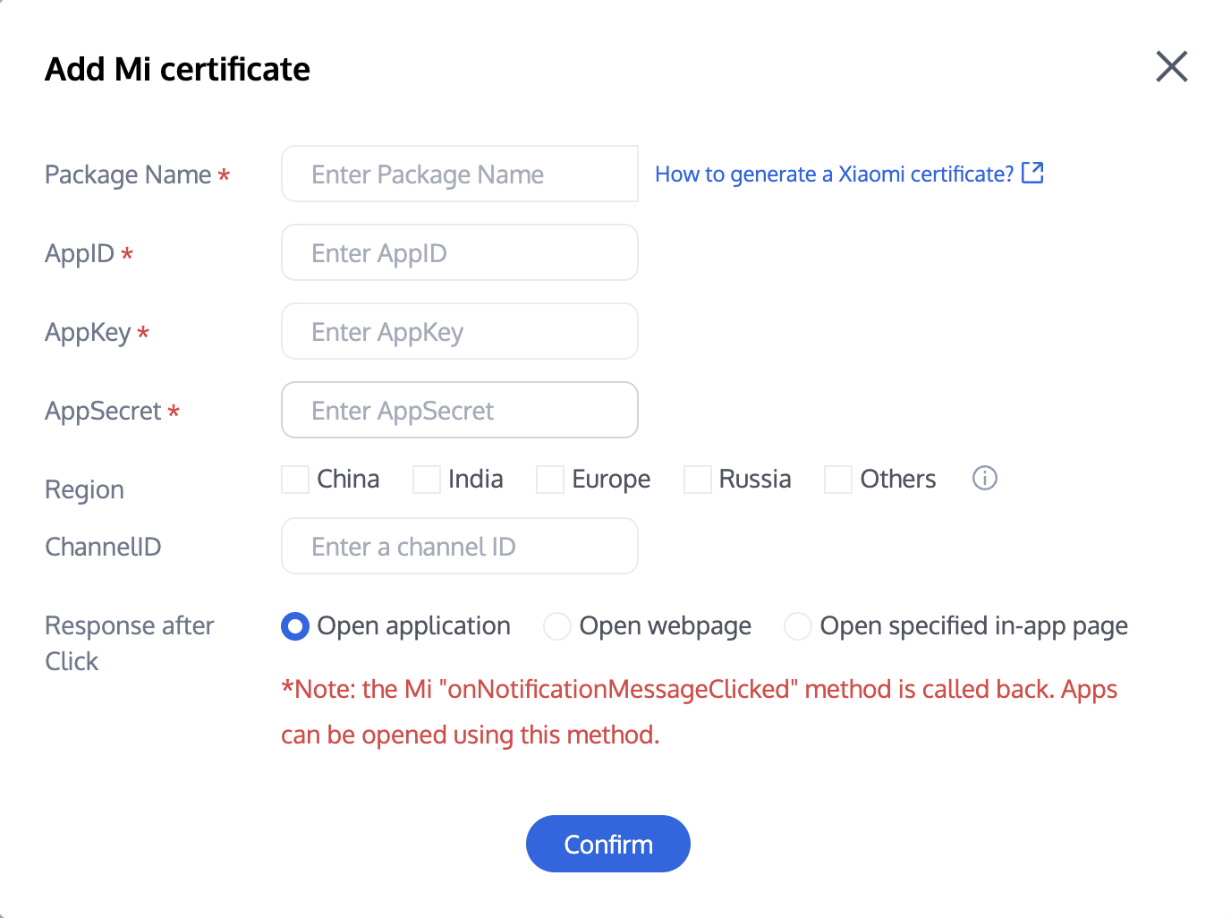 3. 单击 iOS 原生离线推送设置右侧的添加证书。