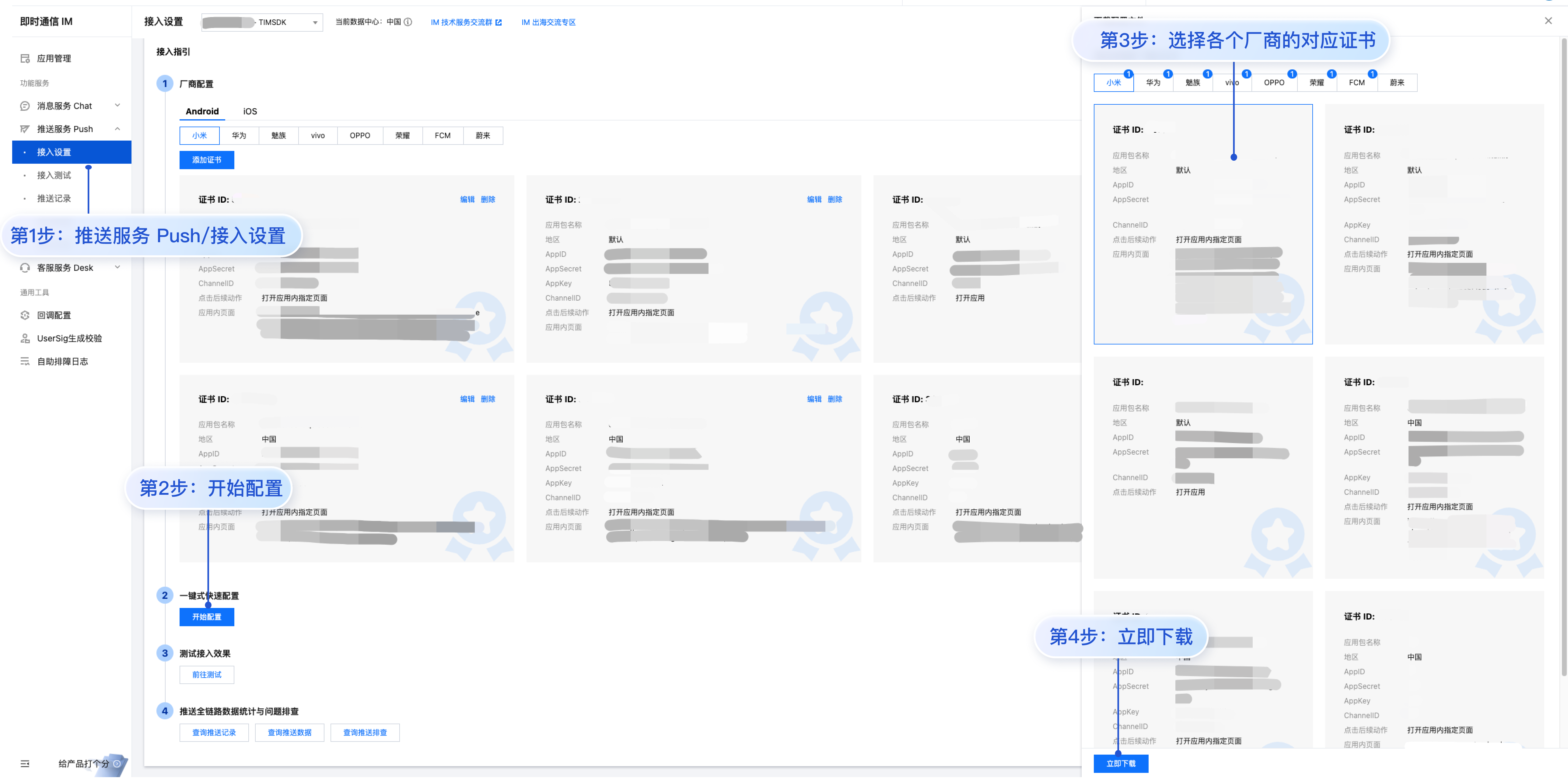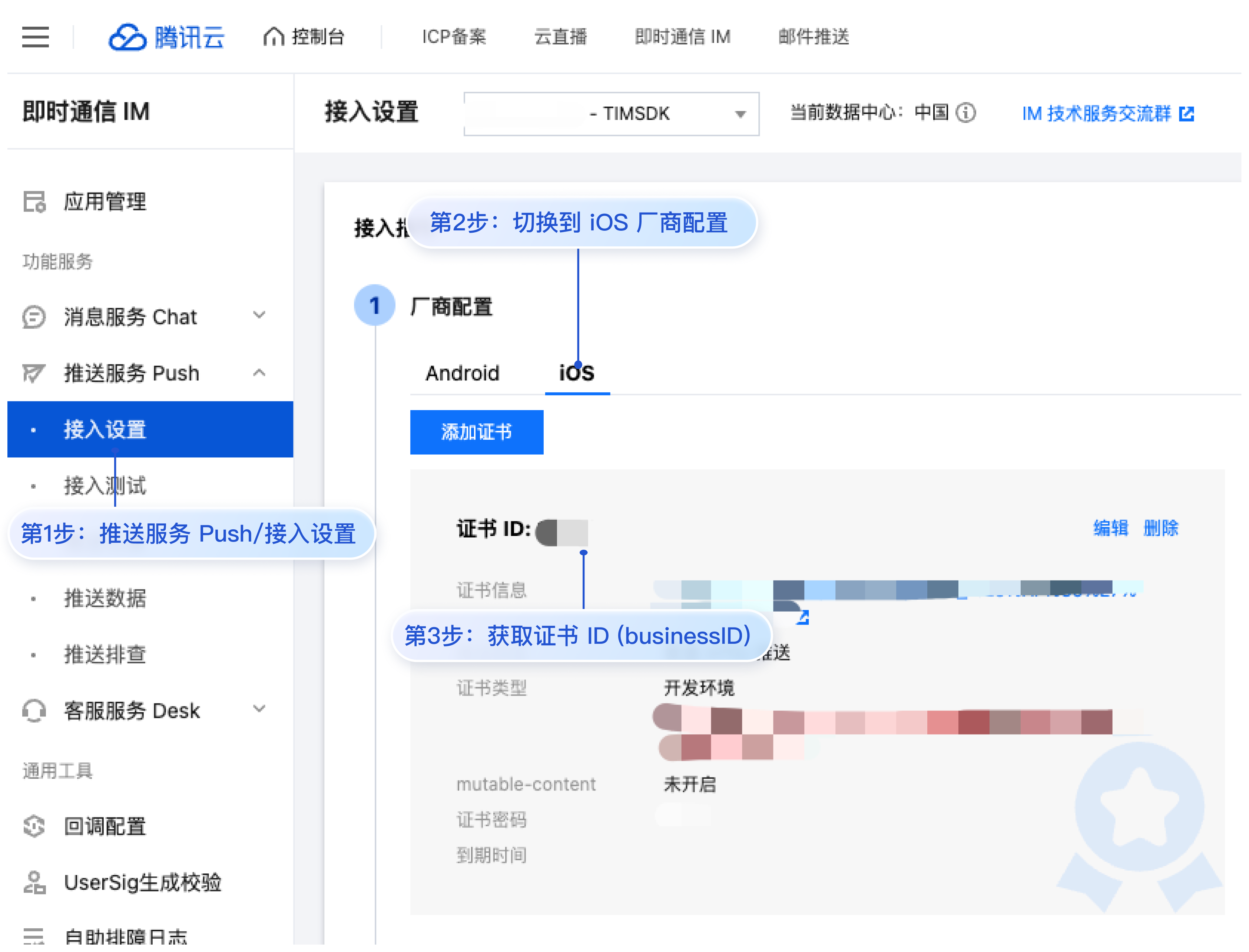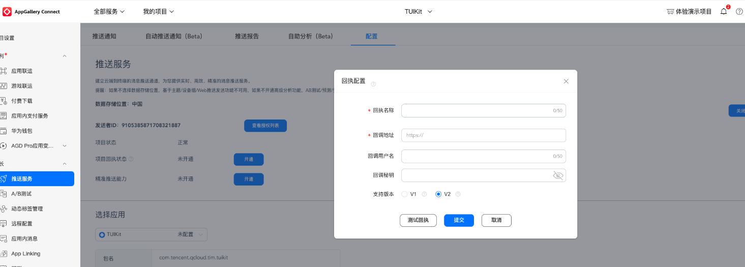 回调地址配置 | 回执 ID 配置 IM 控制台 |