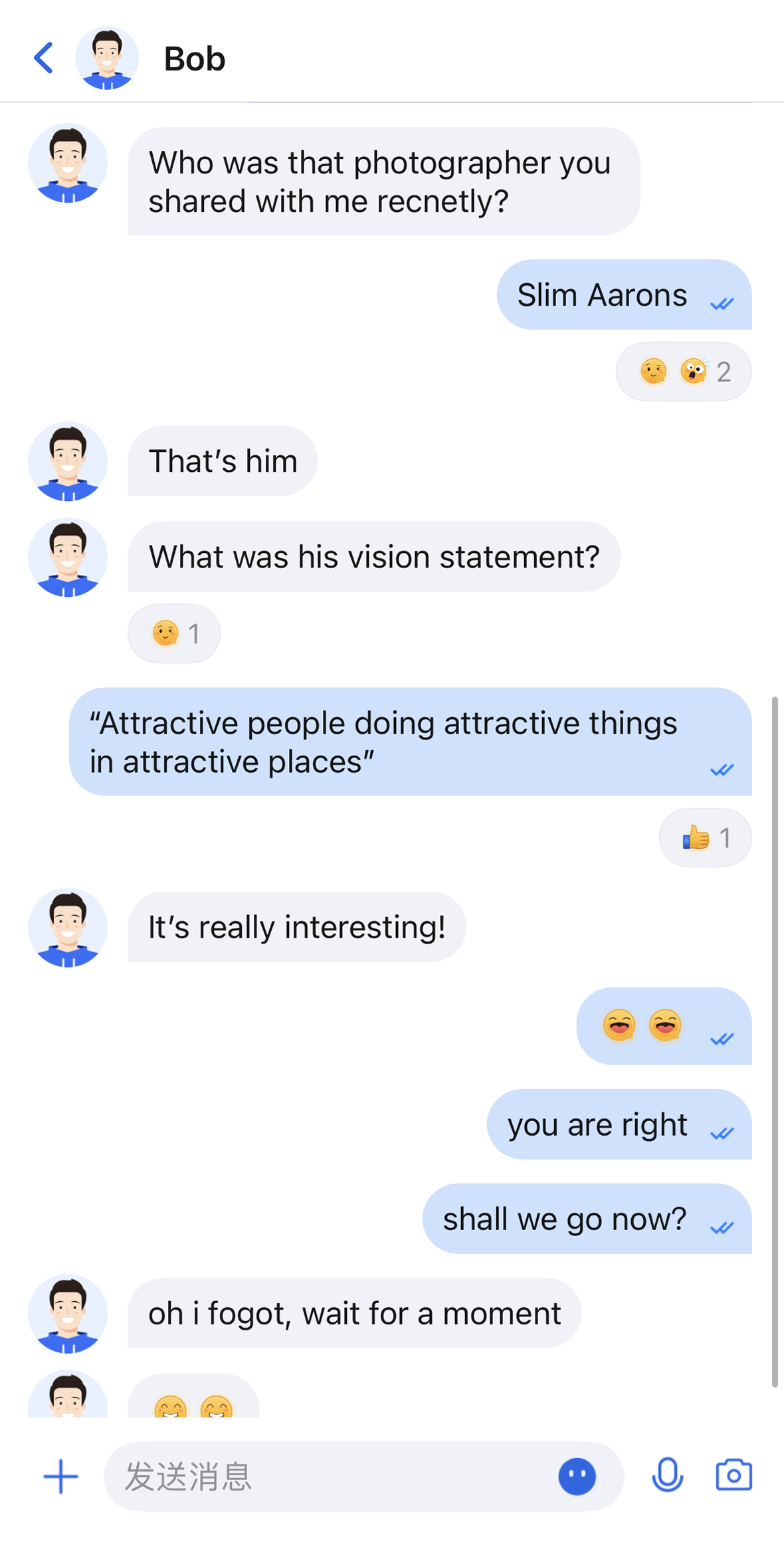 isShowRightAvatar | Boolean | 是否显示右侧头像 | 控制发送消息时是否显示自己头像。 |