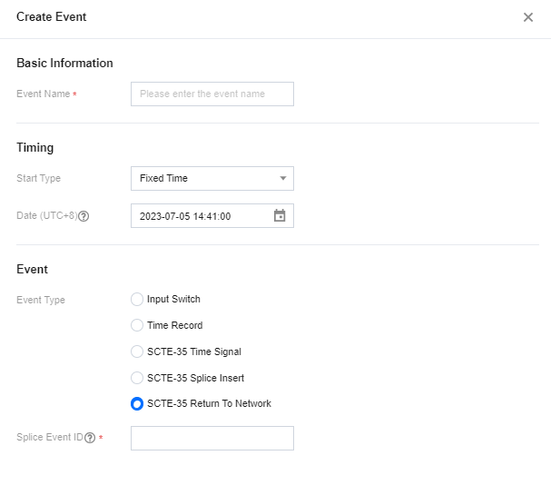 Splice Event ID:Event 标识。支持整数,最小值为0、最大值为4294967295。