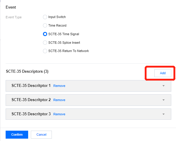 SCTE-35 Descriptor:可以通过 Add 增加多个 SCTE-35 Descriptor。