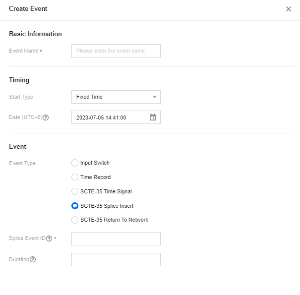 Event Type:选择 SCTE-35 Splice Insert。