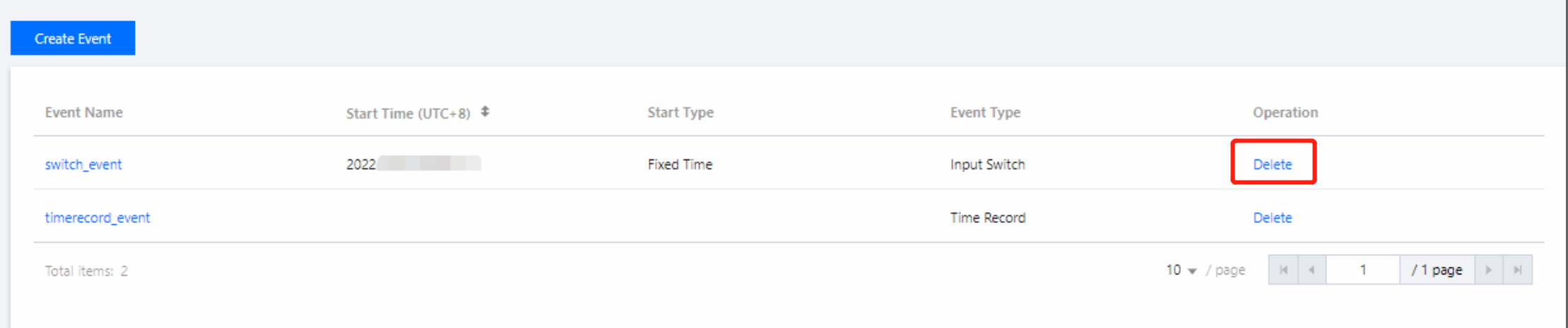 选择需要删除的事件,在该事件最右侧 Operation 中单击 Delete,在弹出的确认框中单击 Confirm 后即可删除该事件。正在执行中的 Event 无法删除,只有未开始或已执行完的 Event 才能进行删除操作。