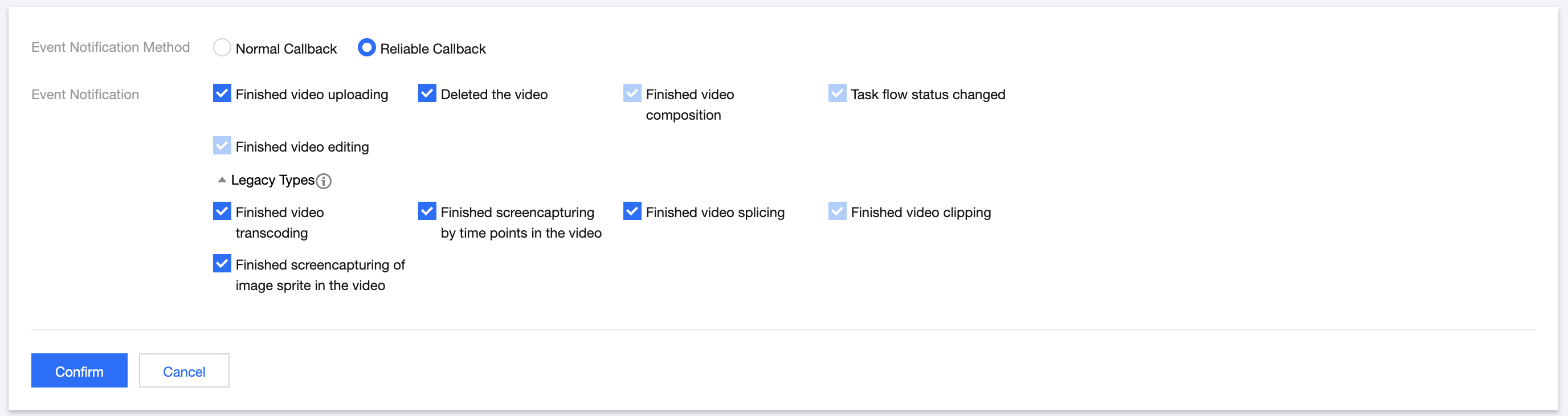 1. 登录 云点播控制台 开通云点播服务,云点播服务可以为小视频提供视频存储和在线播放的能力。 2. 在云点播控制台的回调设置中设置回调模式为可靠回调,事件回调配置中选择上传完成回调,该配置需要10分钟左右能生效。 步骤2:获取云 API 密钥