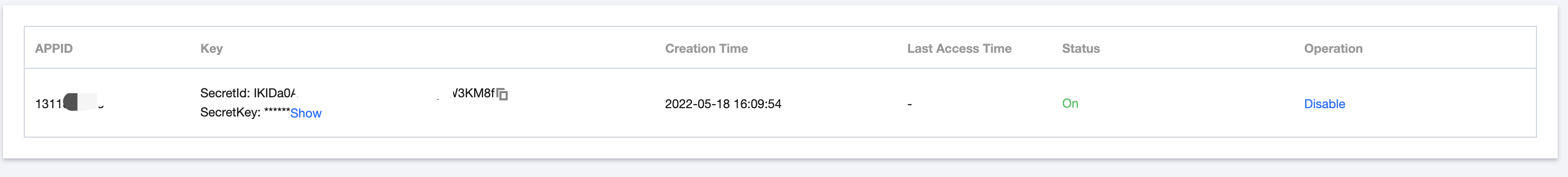 1. 登录控制台,选择云产品 > 访问管理> API 密钥管理,进入 API 密钥管理页面。 2. 获取云 API 密钥