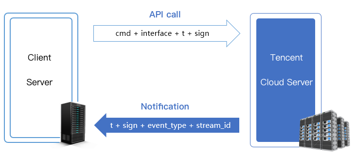 API 调用:腾讯云提供了直播相关的 API 接口,包括状态查询和状态管理等功能,供您的后台服务器调用。