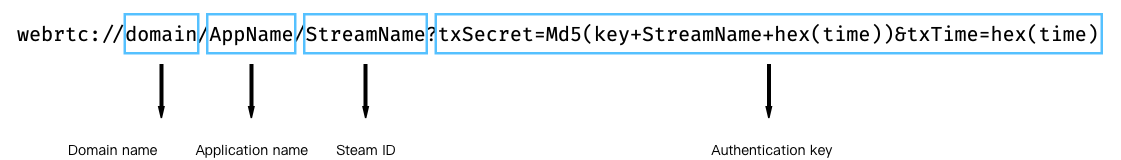 rtmp://替换成webrtc://即可。livePusher.startPush('webrtc://domain/AppName/StreamName?txSecret=xxx&txTime=xxx');