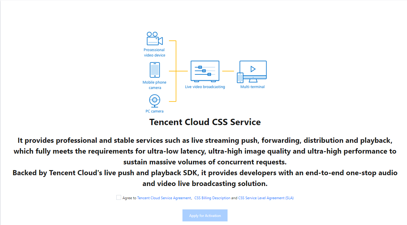 进入 云直播管理控制台,进入腾讯云直播服务开通页,查看相关协议并勾选同意,单击申请开通即可开通云直播服务。