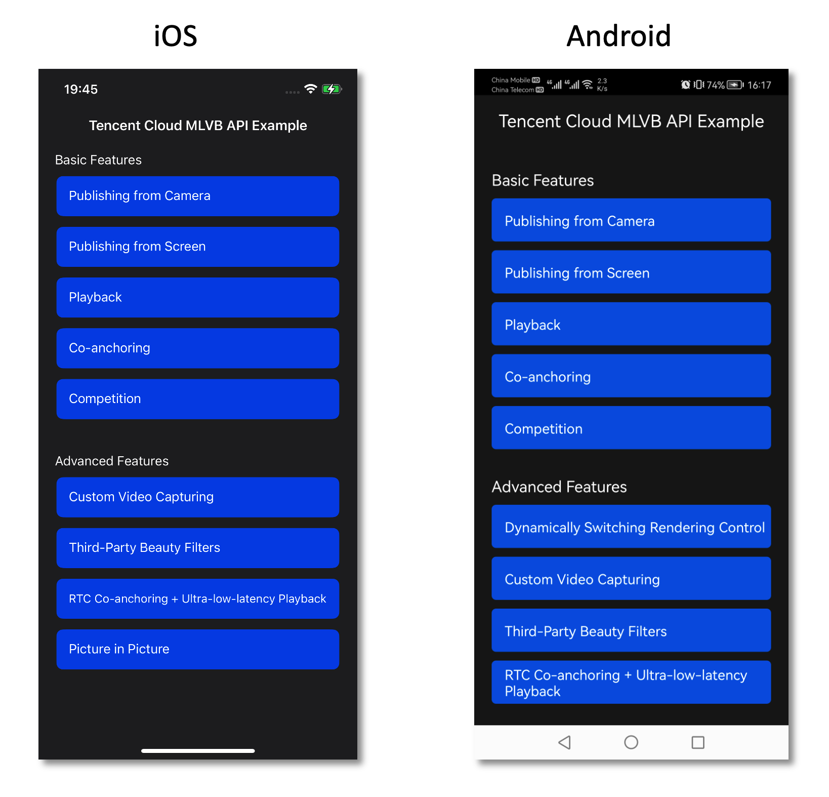 为了帮助开发者可以更好的理解直播 SDK 的 API,从而快速实现一些直播场景的基本功能,我们提供了 MLVB API-Example Demo,您可以参考下面的链接快速跑通此 Demo。