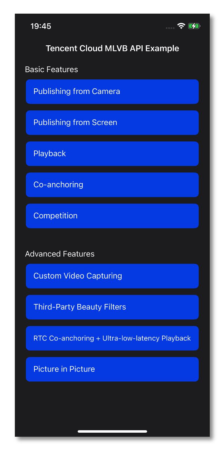 使用 Xcode(9.0及以上的版本)打开源码工程 MLVB-API-Example-OC,单击运行即可。
