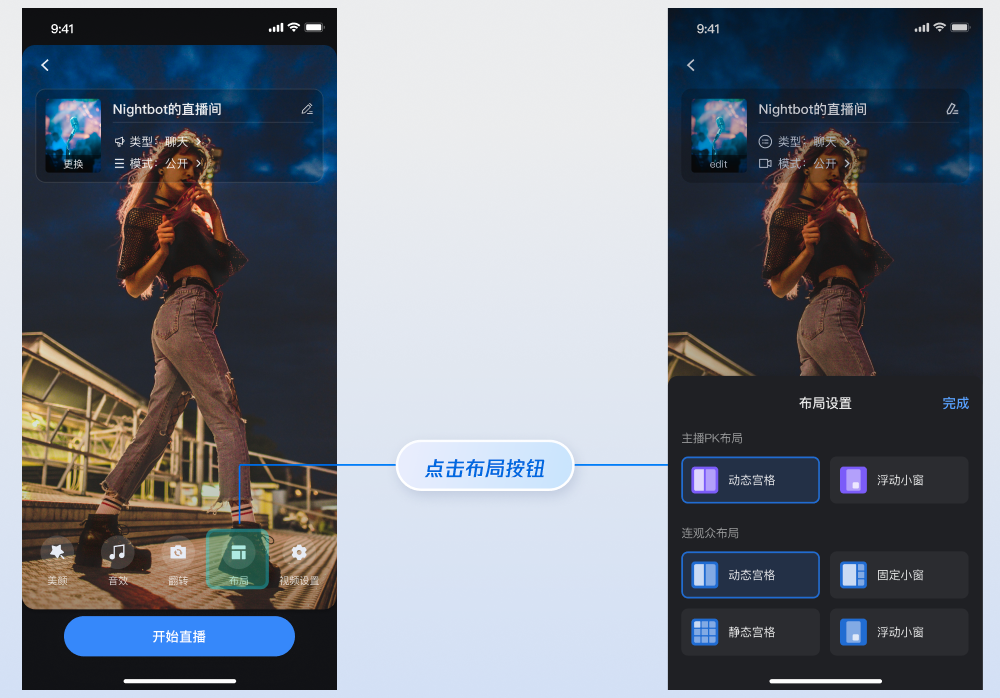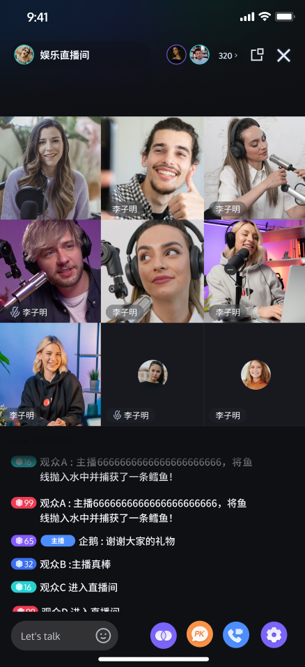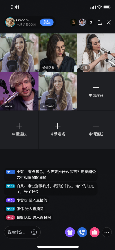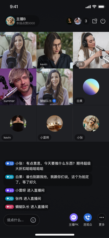 开播前预览 | 连麦互动 | 观众互动 |
