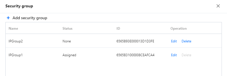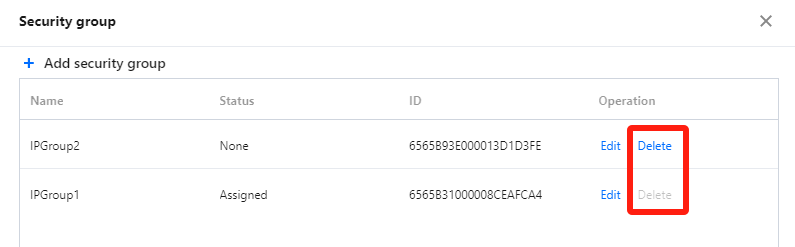 对于状态为未绑定的安全组,可以进行删除操作。对于状态为已绑定的安全组,不能进行删除操作。