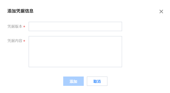 3. 在添加凭据信息页面,填写凭据版本和凭据内容,填写完成后,单击添加,即可完成凭据新版本添加操作。