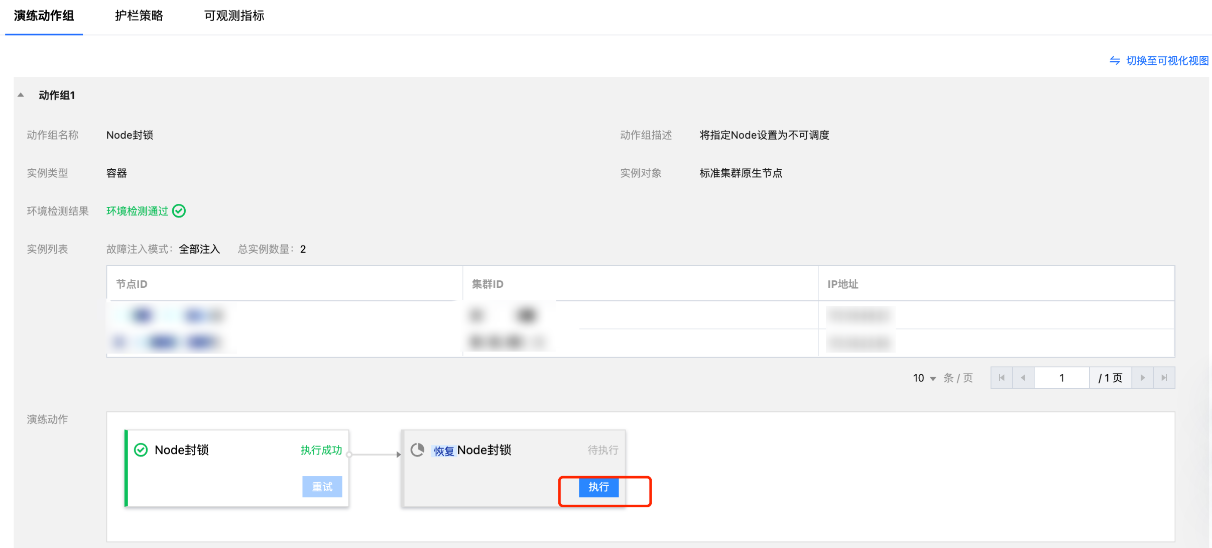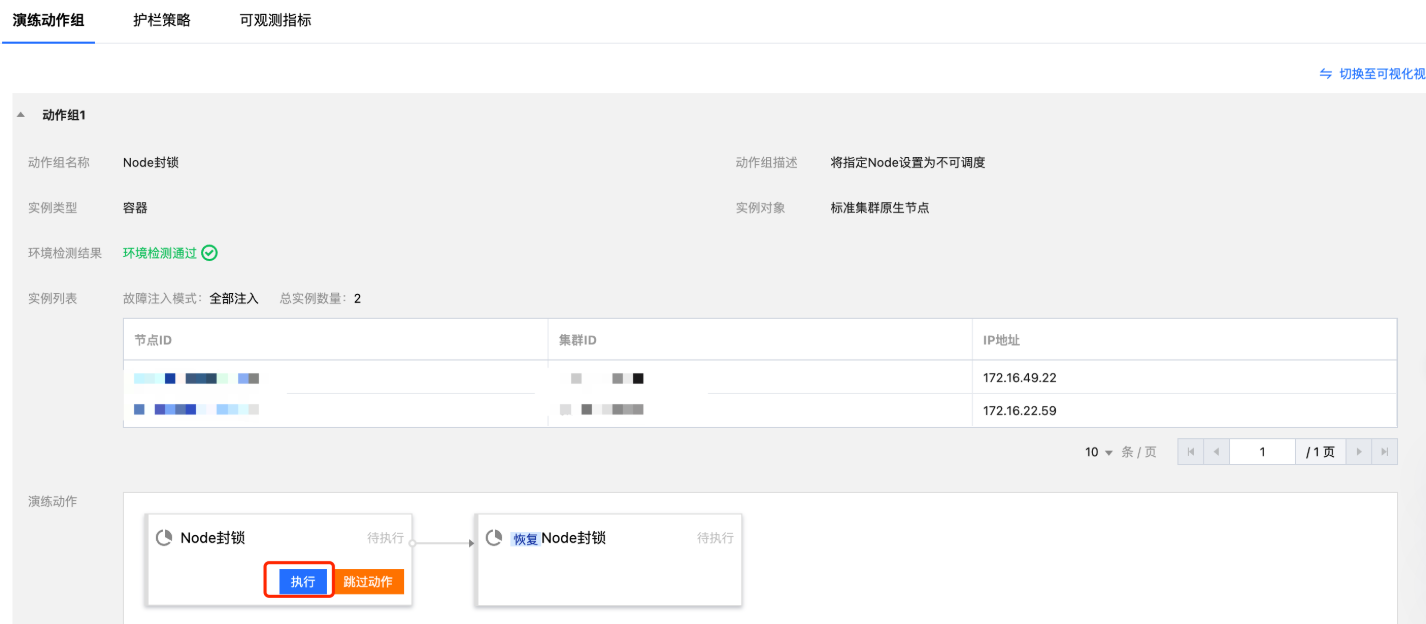 5. 单击执行,启动 Node 封锁操作,开始演练。
