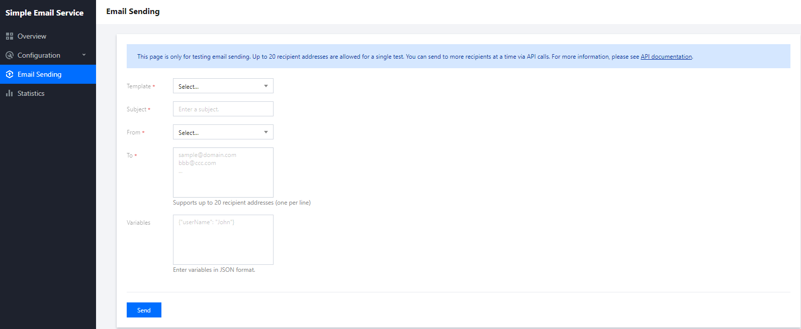 普通发送适用于小范围发送场景,仅支持单一变量与单一变量值替换,并且所有收件人都能够在邮件的"收件人"一栏中查看到彼此。通过邮件推送控制台,您可以配置邮件普通发送的操作,本文将为您介绍如何进行邮件普通发送。