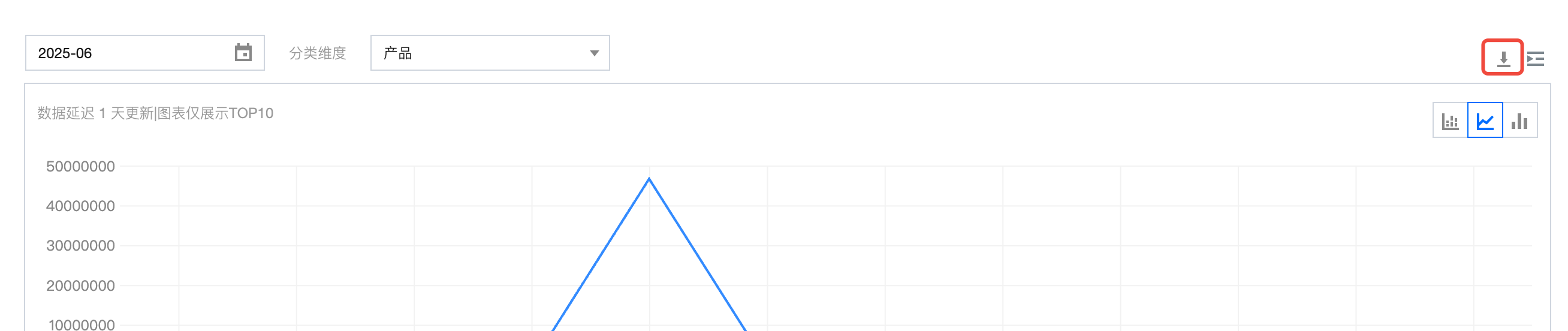 图中只会展示所选维度当天top10的数据,其余部分不展示。下方表格中会全量显示,支持翻页查询与下载。