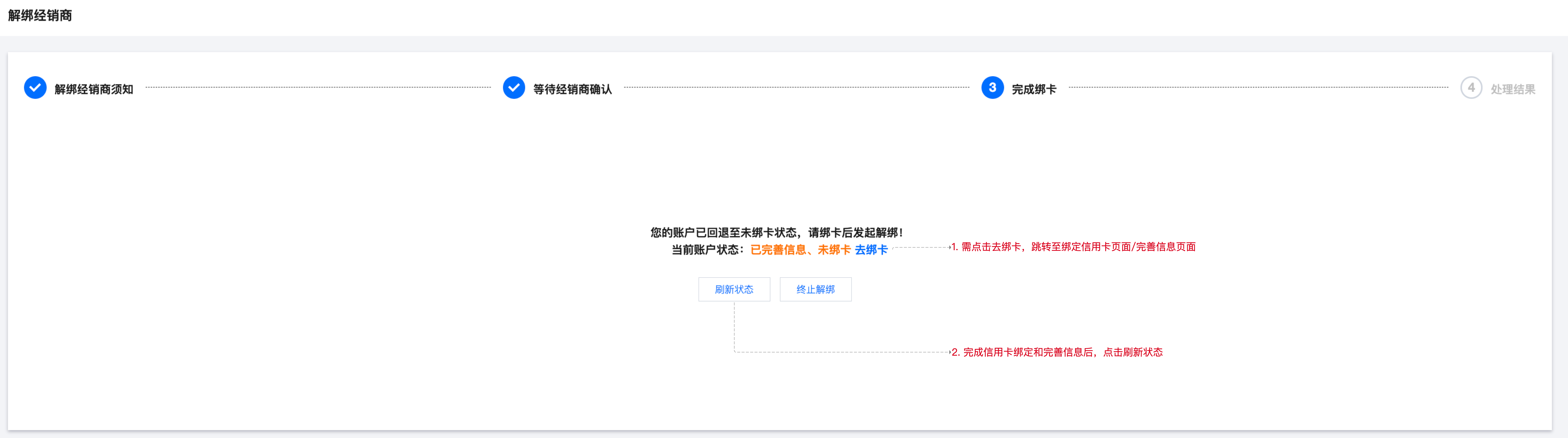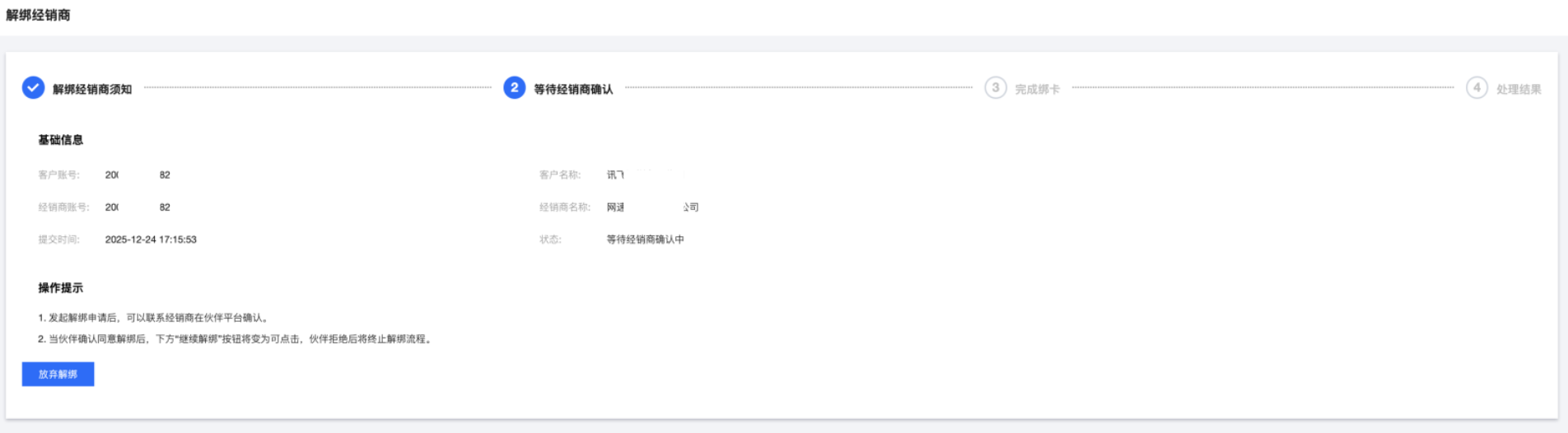 当前解绑经销商流程仅适用于腾讯云经销商、二级经销商、总经销商的子客。
