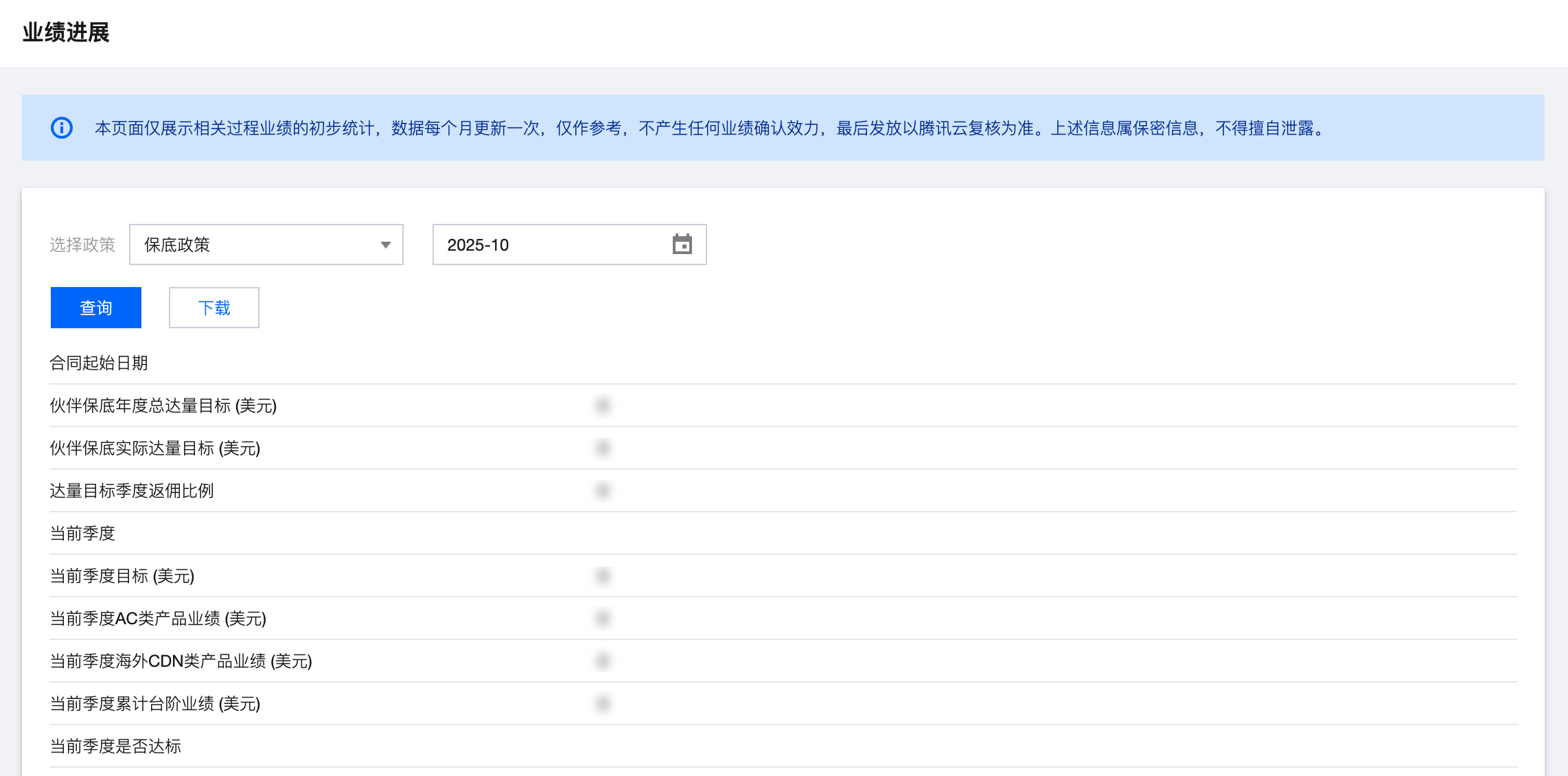 经销商通过业绩进展模块,可以按月查看或下载所参与政策的返佣预估金额。