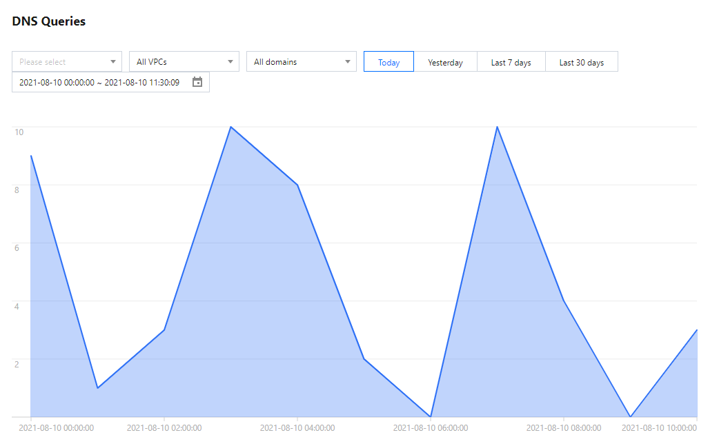 根据 VPC 筛选:您可以根据私有域绑定的 VPC 实例来进行筛选展示数据。