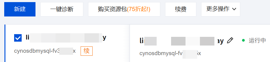 在集群列表选择一个或多个需要续费的集群,在上方单击