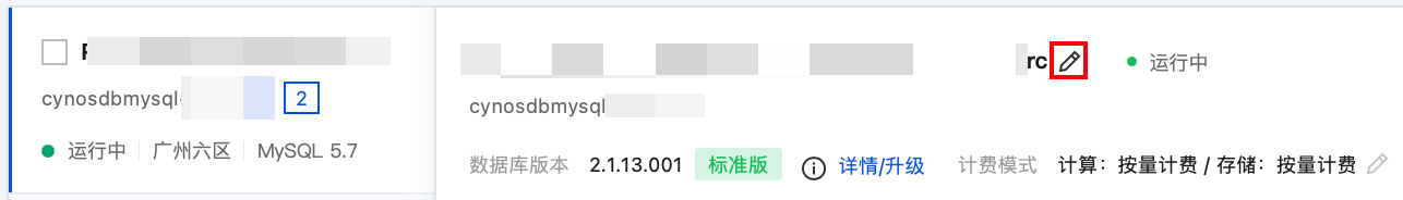 您可以通过集群名对 TDSQL-C MySQL 版集群进行区分和管理,默认集群名和集群 ID 保持一致,也可以通过控制台对集群名字进行修改。