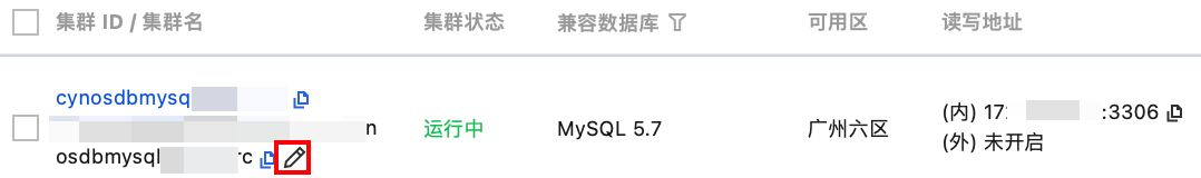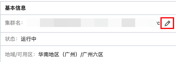 ,在集群列表中,找到需要的集群,单击集群名后的编辑图标。
