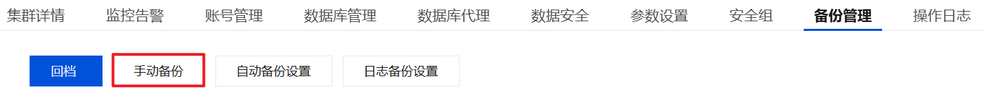 本接口(CreateBackup)用于为集群创建手动备份。 |