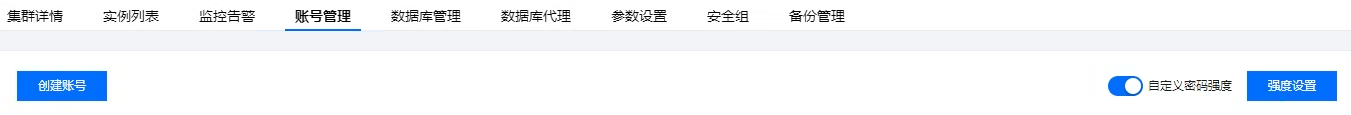 3. 在集群管理页选择账号管理,单击右侧的强度设置。