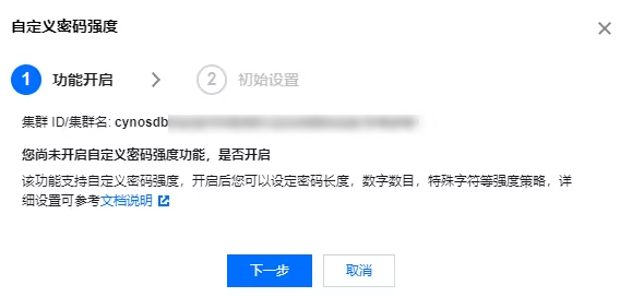 本接口(OpenClusterPasswordComplexity)用于开启自定义密码复杂度功能。 | |