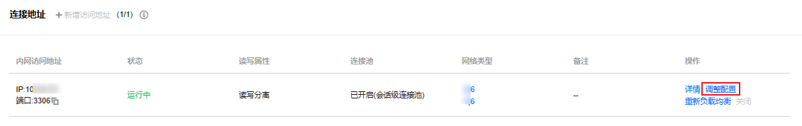 3. 在连接地址下找到目标访问地址,在其操作列单击调整配置。