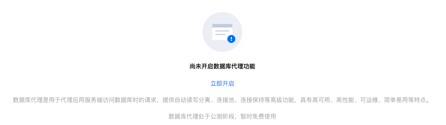 2. 在集群管理页面,选择数据库代理页,单击立即开启。