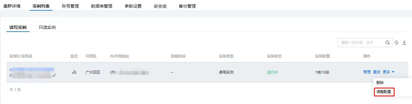 若误删账号,可在集群列表单击集群 ID 进入实例管理页,通过账号管理 > 创建账号或使用 SQL 语句进行新建。