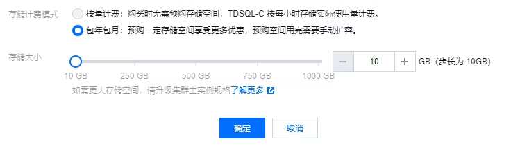 存储计费模式为按量计费:无需对磁盘进行扩容,您可使用的磁盘最大容量为主实例对应计算节点下磁盘的上限,若要使用超过此计算节点上限的存储空间,您可对主实例进行计算节点升级。详细计算节点和对应最大存储容量请参见 产品规格。 存储计费模式为包年包月:您可通过控制台调整集群的存储空间,若要调整超过此计算节点上限的存储空间,您可对主实例进行计算节点升级。详细计算节点和对应最大存储容量请参见 产品规格。 存储计费模式为包年包月时,变更存储容量的有效计费时间为变更容量时到您的集群到期的时间。