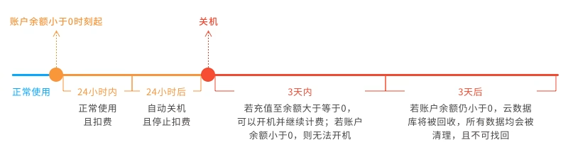 隔离3天后,若该账户余额仍为小于0的状态,被隔离的集群将被下线,置于回收队列中。回收后所有数据会被清理,且不可找回。