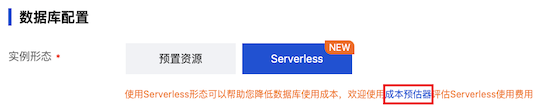 2. 在数据库配置 > 实例形态后选择 Serverless。