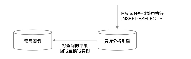 在数据库中常常会有执行 INSERT INTO <Table> SELECT ……的场景,如果 SELECT 的执行时间过长会导致整体执行效率过低。只读分析引擎作为承载在线 SQL 中的复杂查询。可以通过使用此功能将 INSERT …… SELECT……语句中的 SELECT 部分放到只读分析引擎中执行,加速 SELECT 的查询效率。然后将数据自动回写至读写节点中,从而大幅度提升业务的执行效率。
