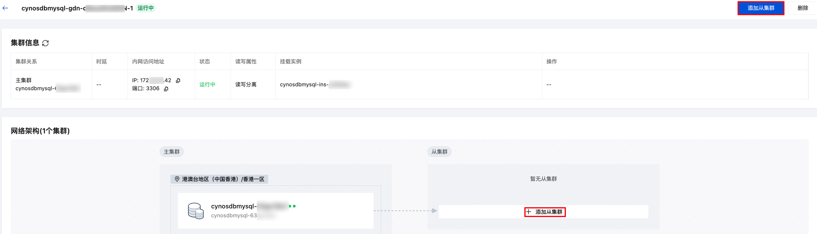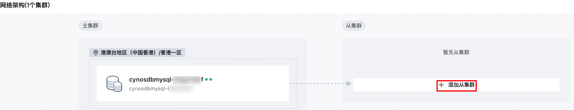 3. 在集群管理页,选择全球数据库,在网络架构下单击添加从集群。