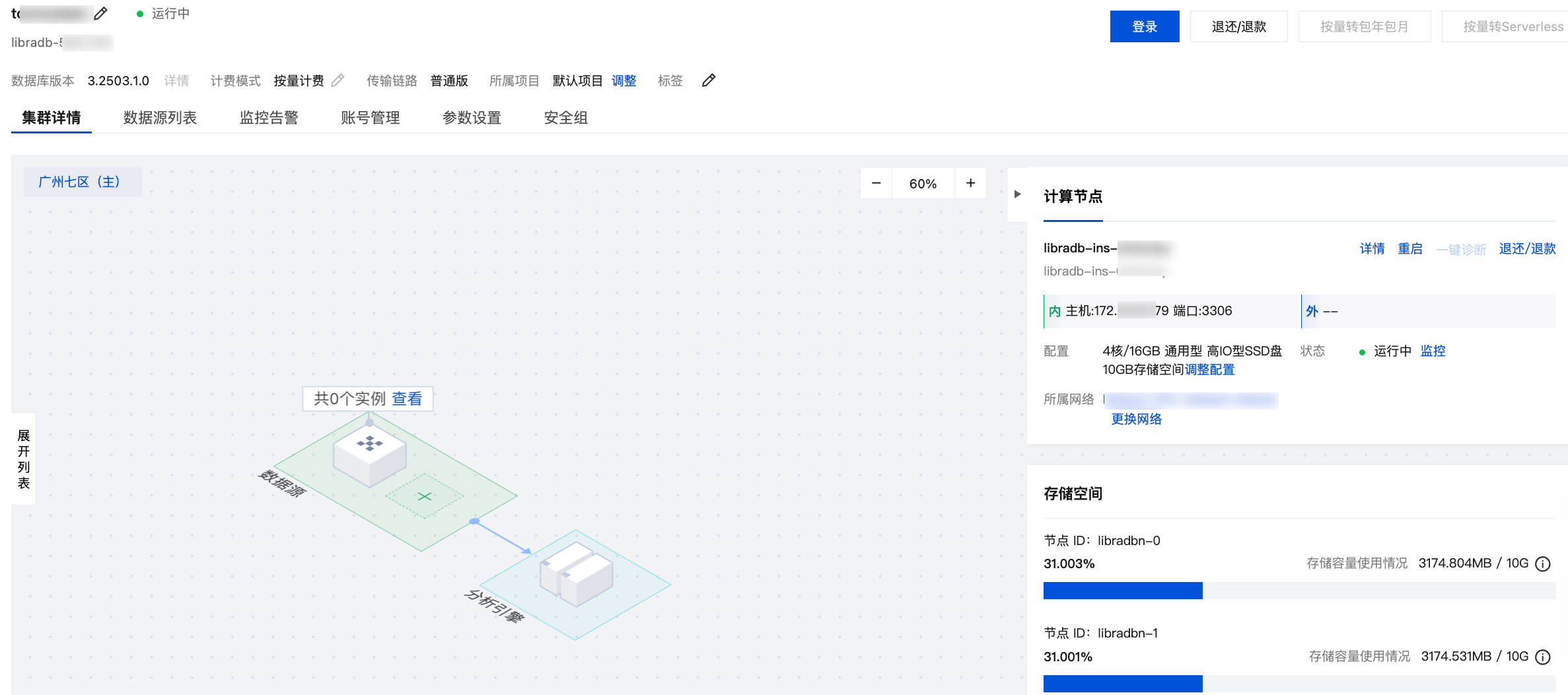 3. 在集群管理页您可概览分析集群的信息,包括集群名称、数据库版本等基本信息。