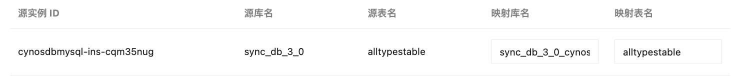 指定实例的 A 库下的表名映射为 B.xxx_1 | 实例 ID | A | .* | B | *_1 |
