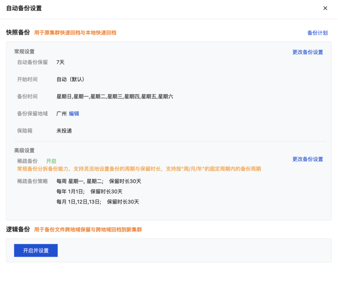 支持设置1 - 3个稀疏备份策略。