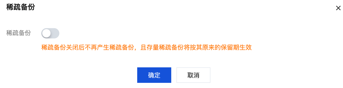 关闭稀疏备份功能后,将不再产生稀疏备份,存量稀疏备份按原来的备份保留期生效,保留期到期后备份将被自动清理。