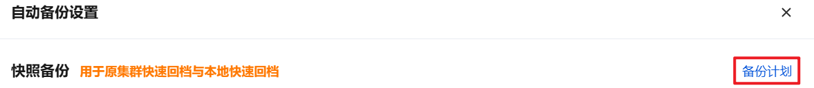 3. 在集群管理页,选择备份管理 > 自动备份设置。